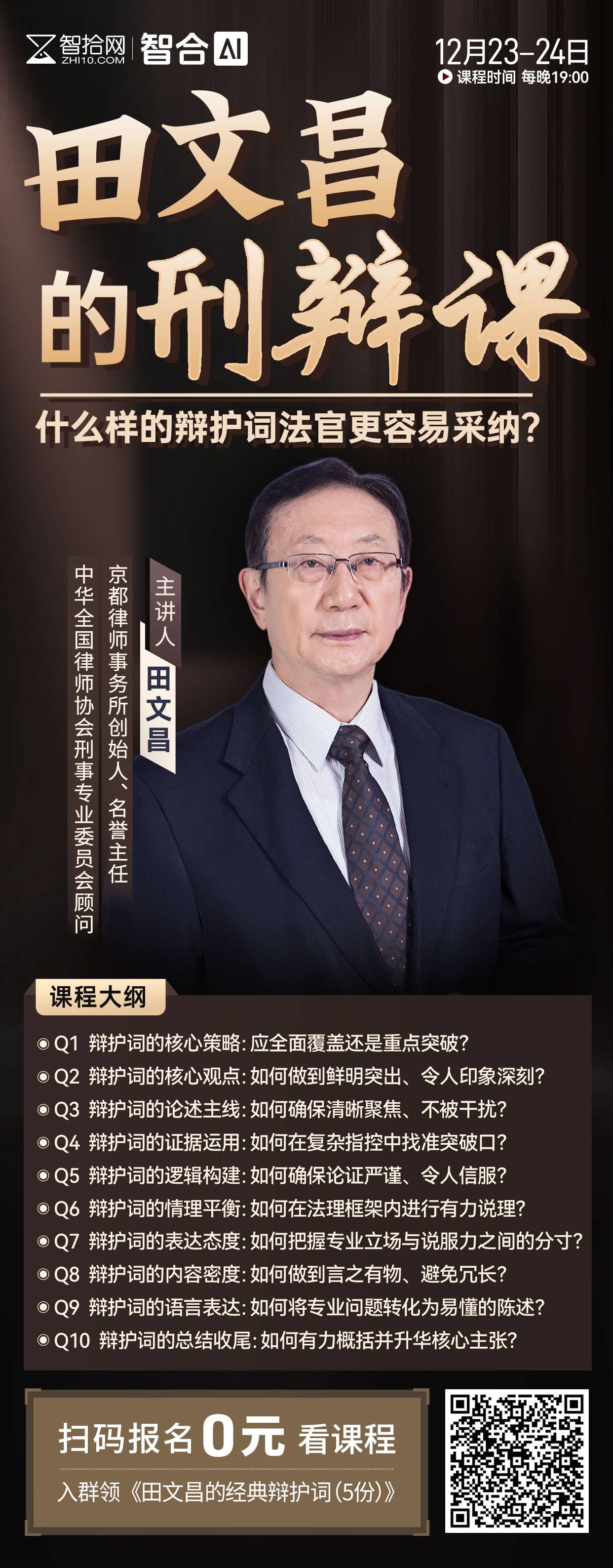 【两天免费课程】田文昌的刑辩课——什么样的辩护词法官更容易采纳?