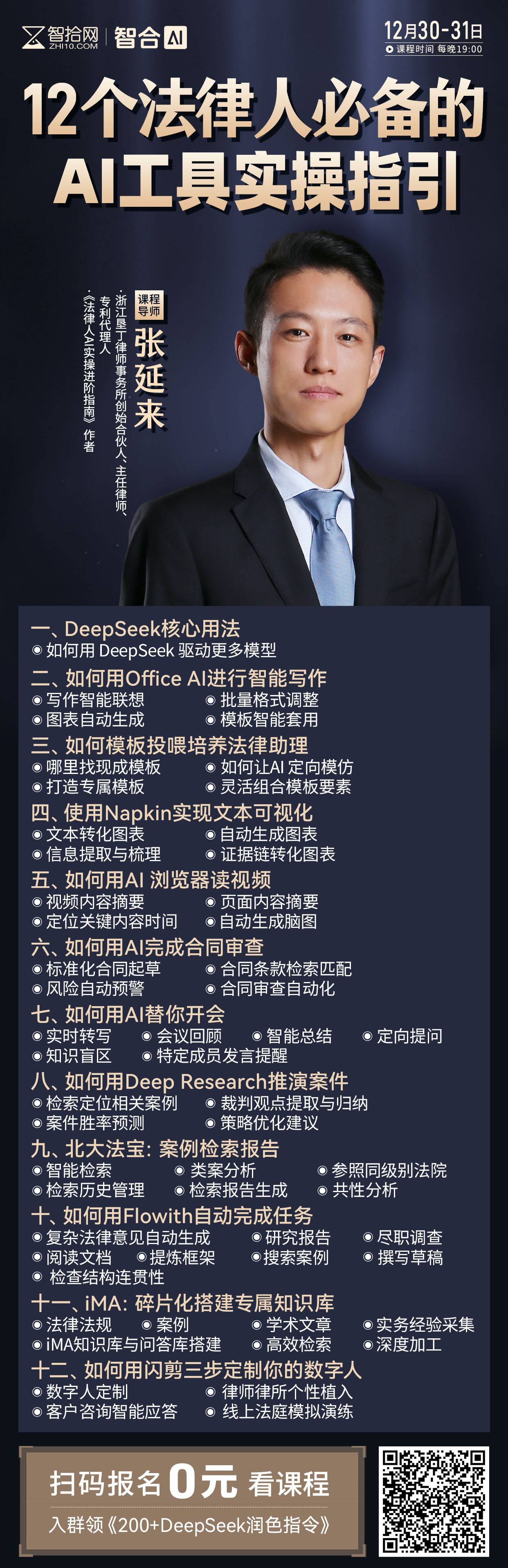 【两天免费课程】张延来:12个法律人必备的DeepSeek等AI工具实操指引
