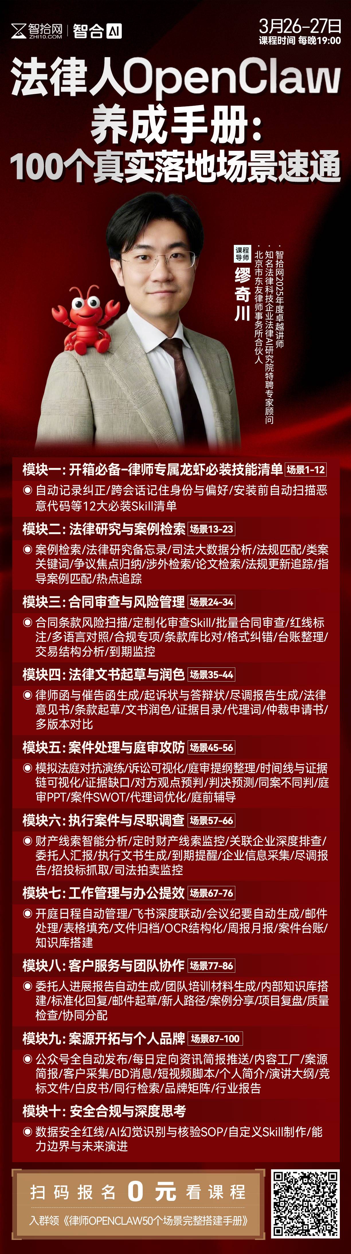 【直播回看】缪奇川:法律人OpenClaw小龙虾100个落地场景