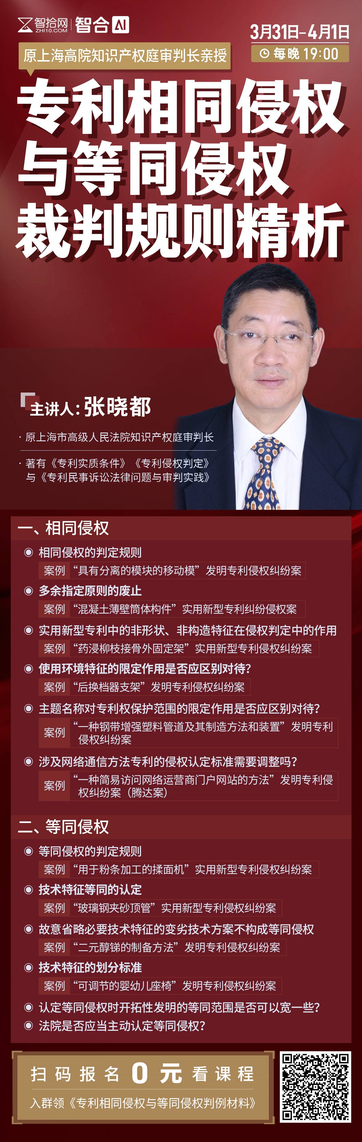 【课程回看】张晓都:专利相同侵权与等同侵权裁判规则