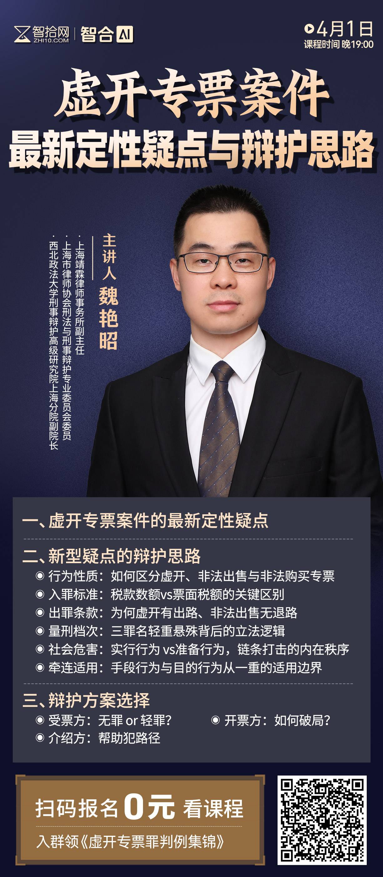 【课程回看】魏艳昭:虚开专票案件最新定性疑点与辩护思路