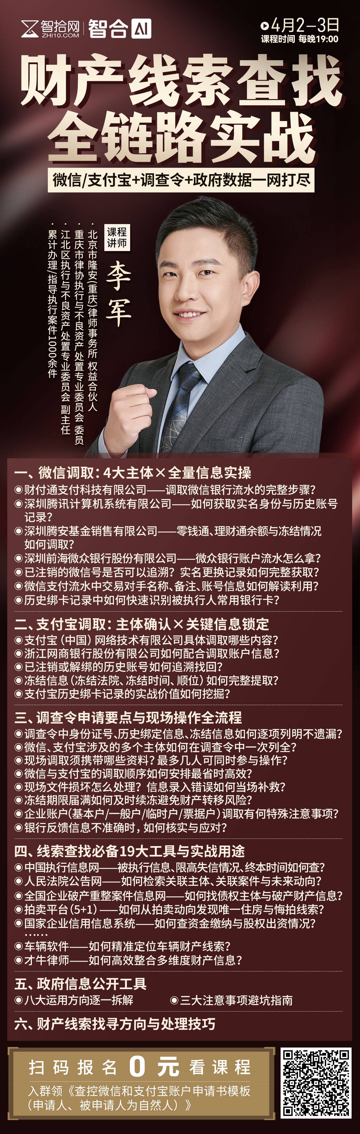 【两天免费课程】李军:财产线索查找全链路实战