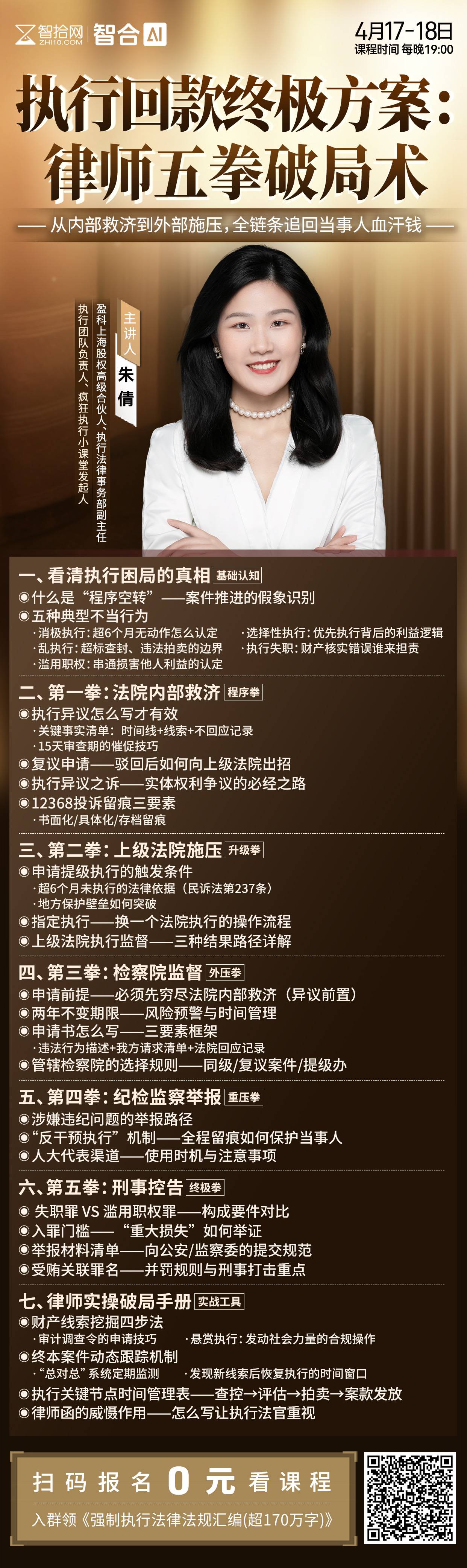 【两天免费直播】朱倩:执行回款终极方案——律师五拳破局术