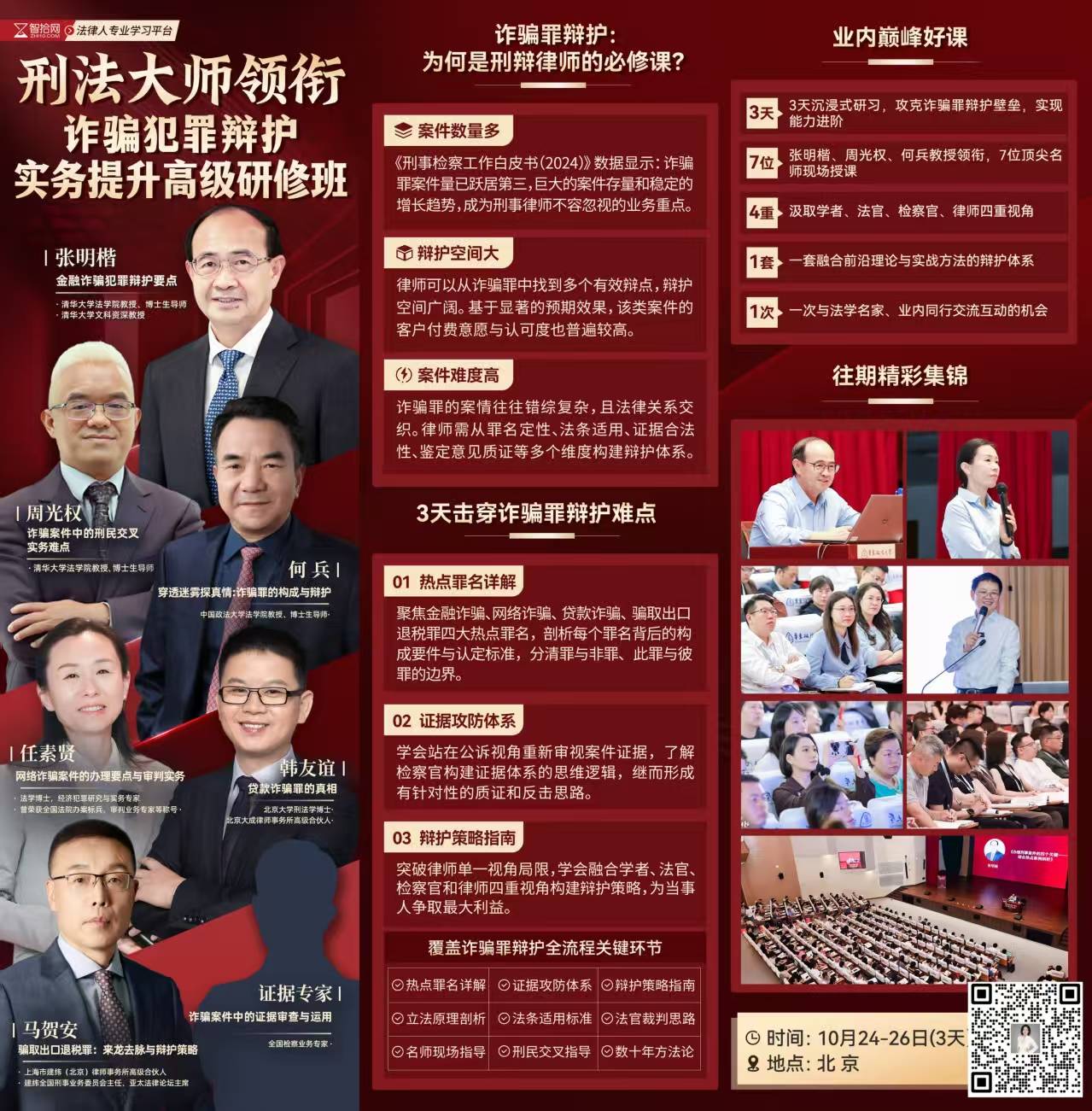 【团购特批】1024-北京-诈骗罪辩护研修班报名链接-智拾网Cynthia 扫二维码继续学习 二维码时效为半小时