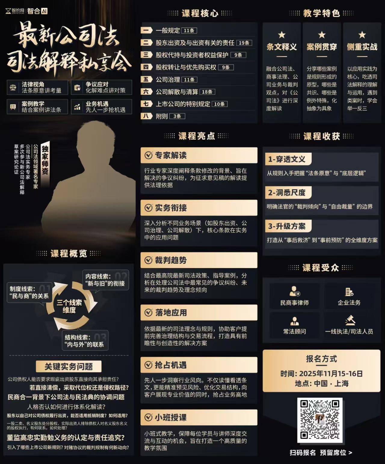 【年卡专享】1115-上海-公司法司法解释报名链接-智拾网Ella 扫二维码继续学习 二维码时效为半小时