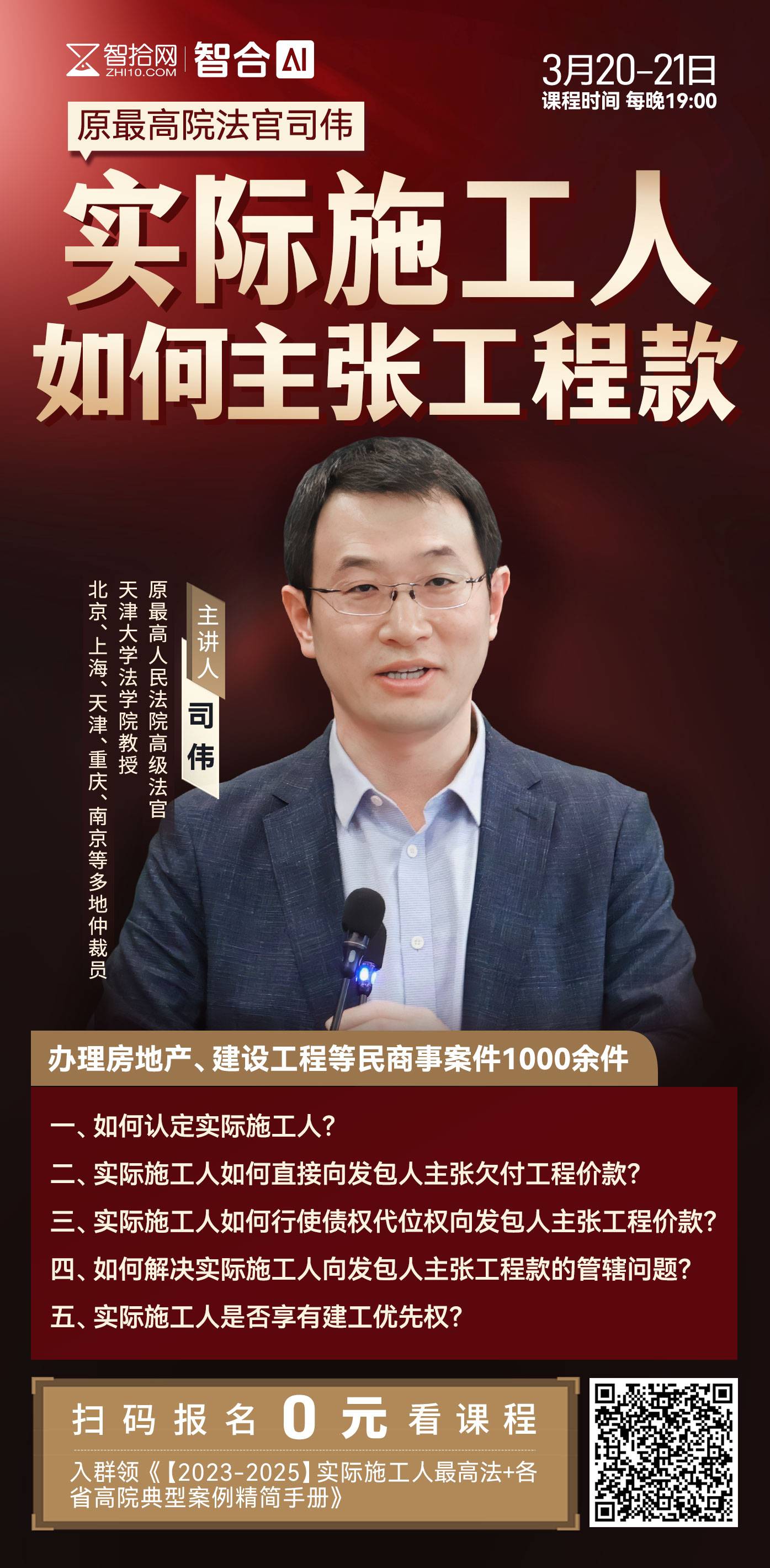【两天免费课程】司伟:实际施工人如何主张工程款?