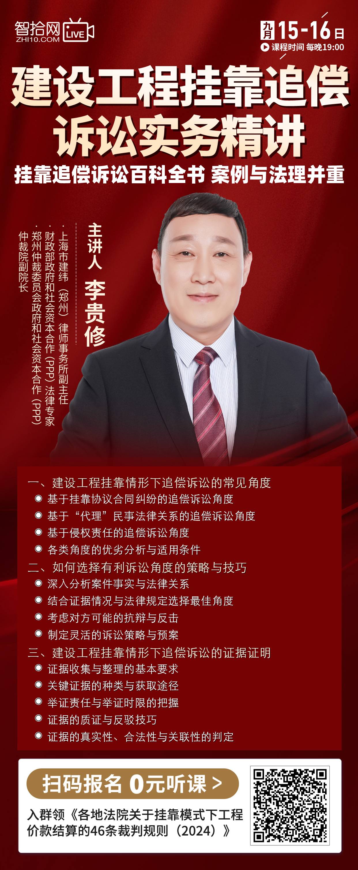 【课程回看】李贵修:建设工程挂靠追偿诉讼实务精讲