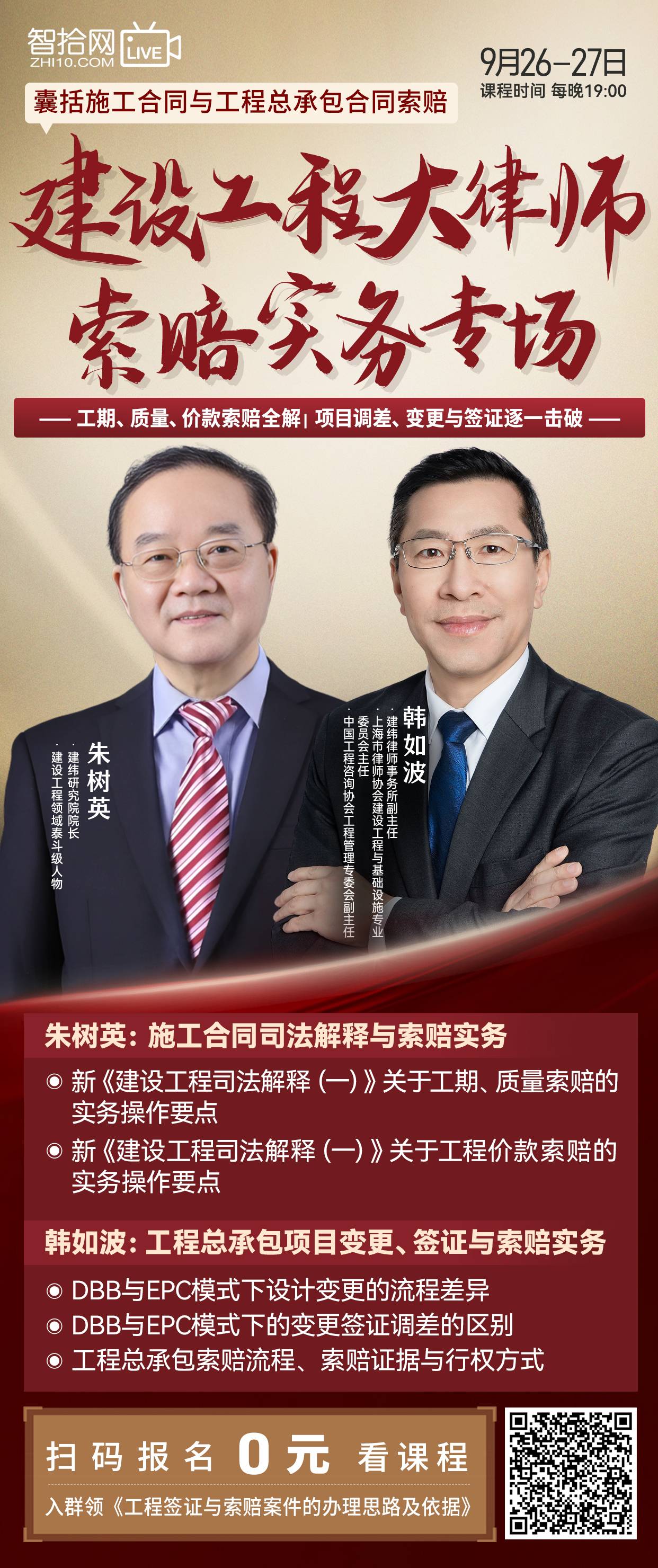 【课程回看】朱树英、韩如波:建设工程大律师索赔实务专场