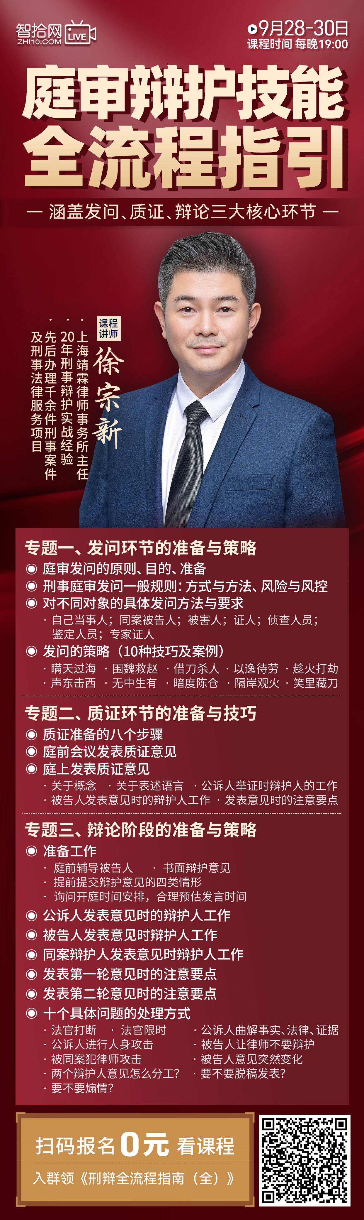 【课程回看】徐宗新:庭审辩护技能全流程指引