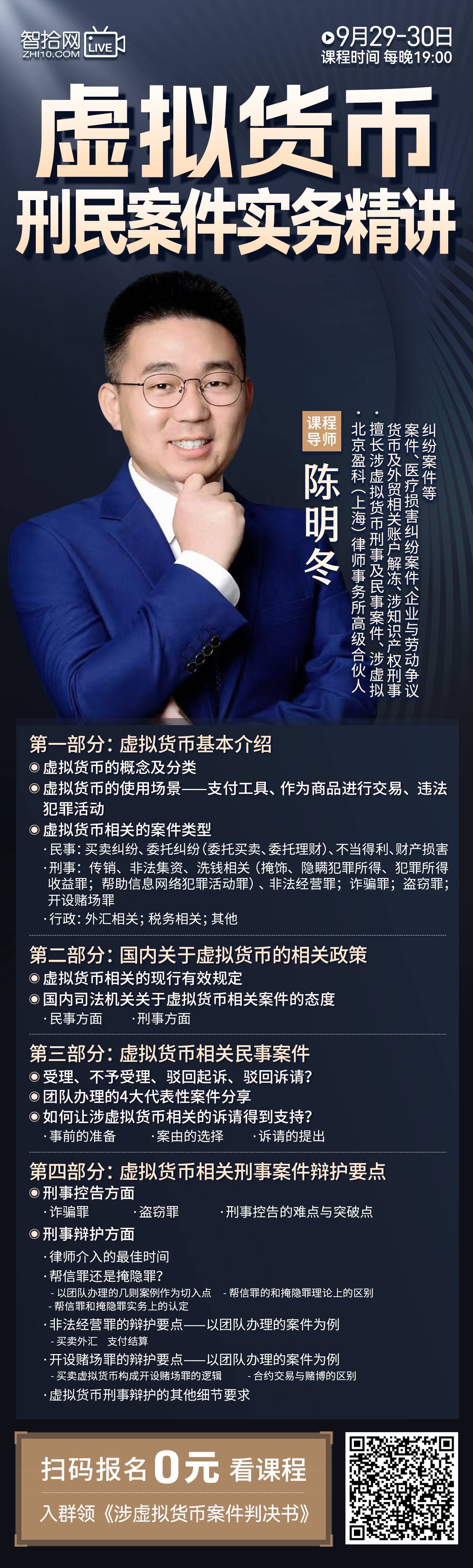 【直播回看】陈明冬:虚拟货币刑民案件实务精讲