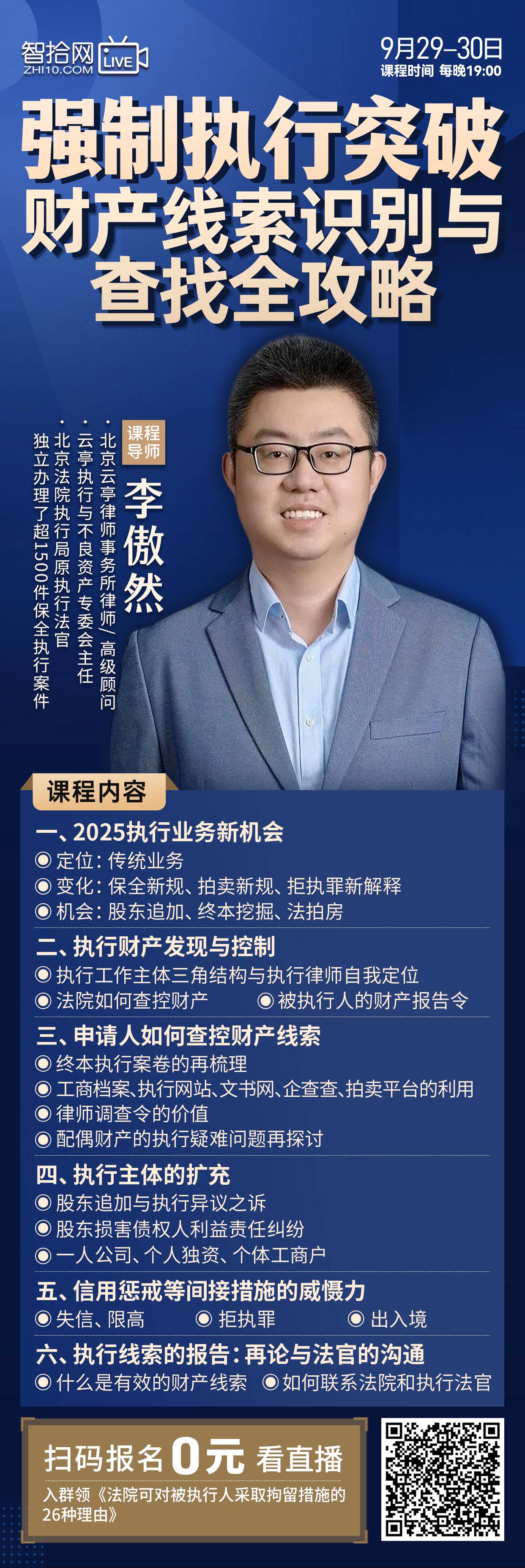 【课程回看】李傲然:强制执行突破财产线索识别与查找全攻略