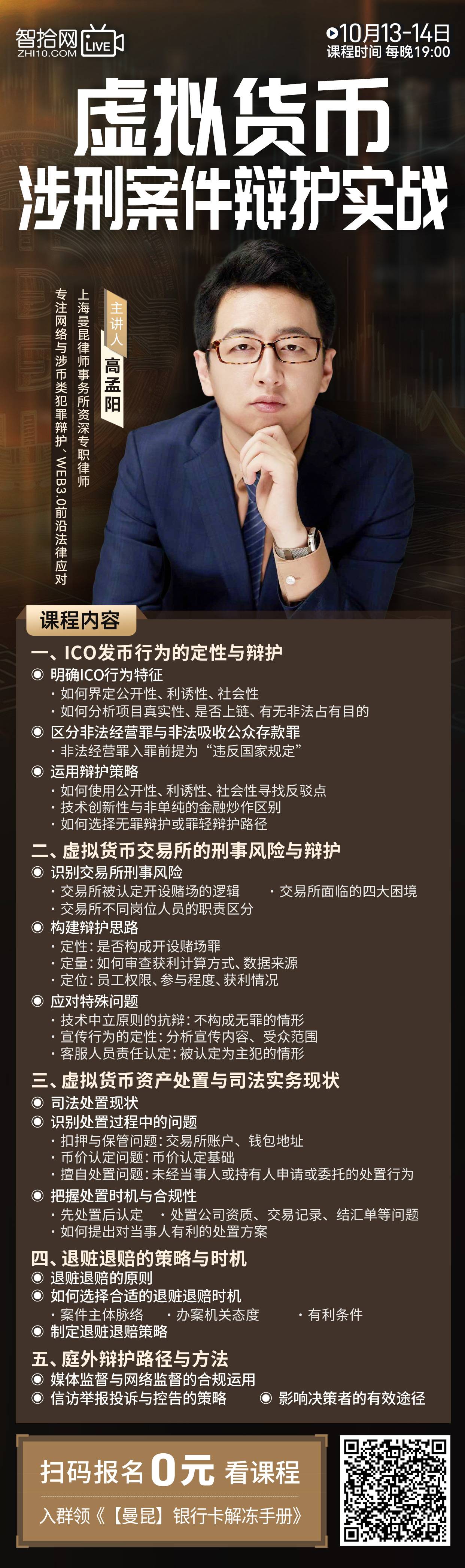 【两天免费直播】高孟阳:虚拟货币涉刑案件辩护实战