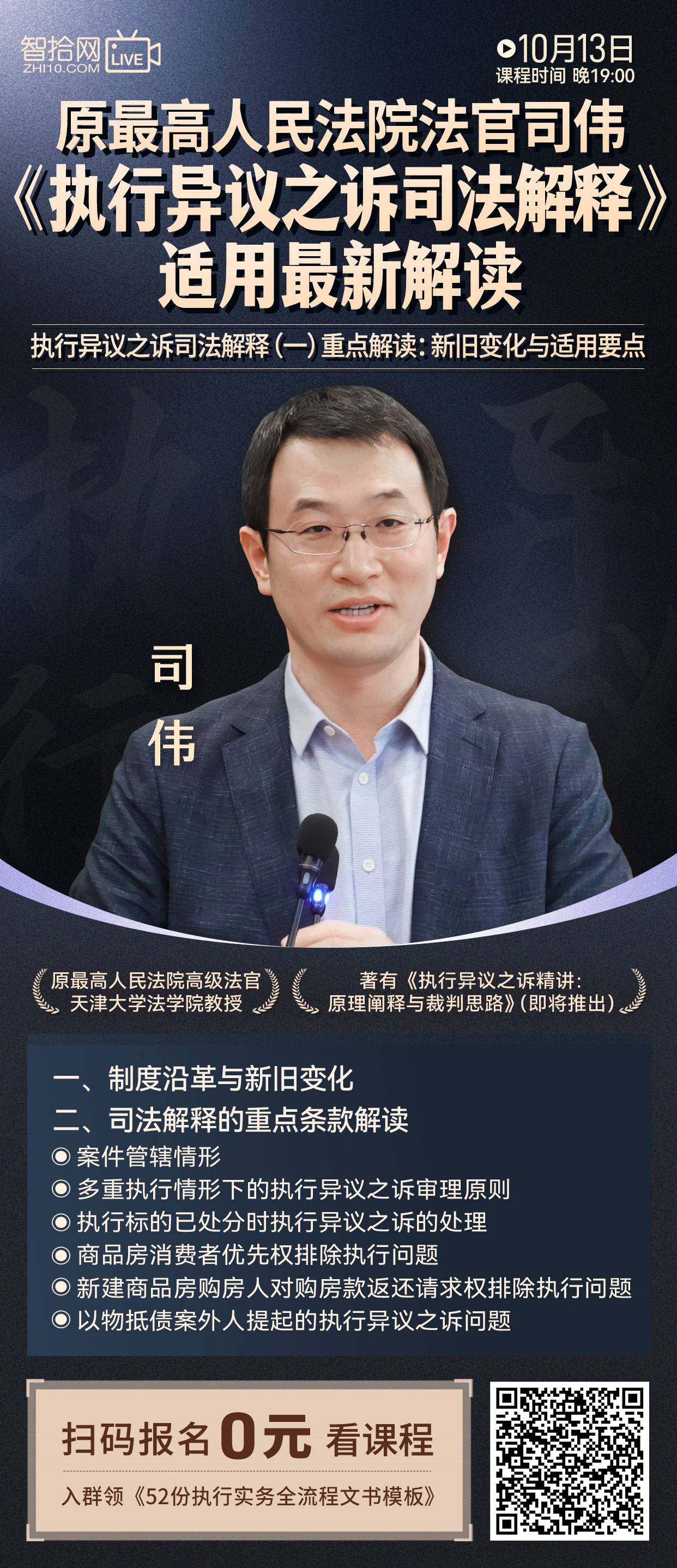【免费课程】司伟:《执行异议之诉司法解释》适用最新解读