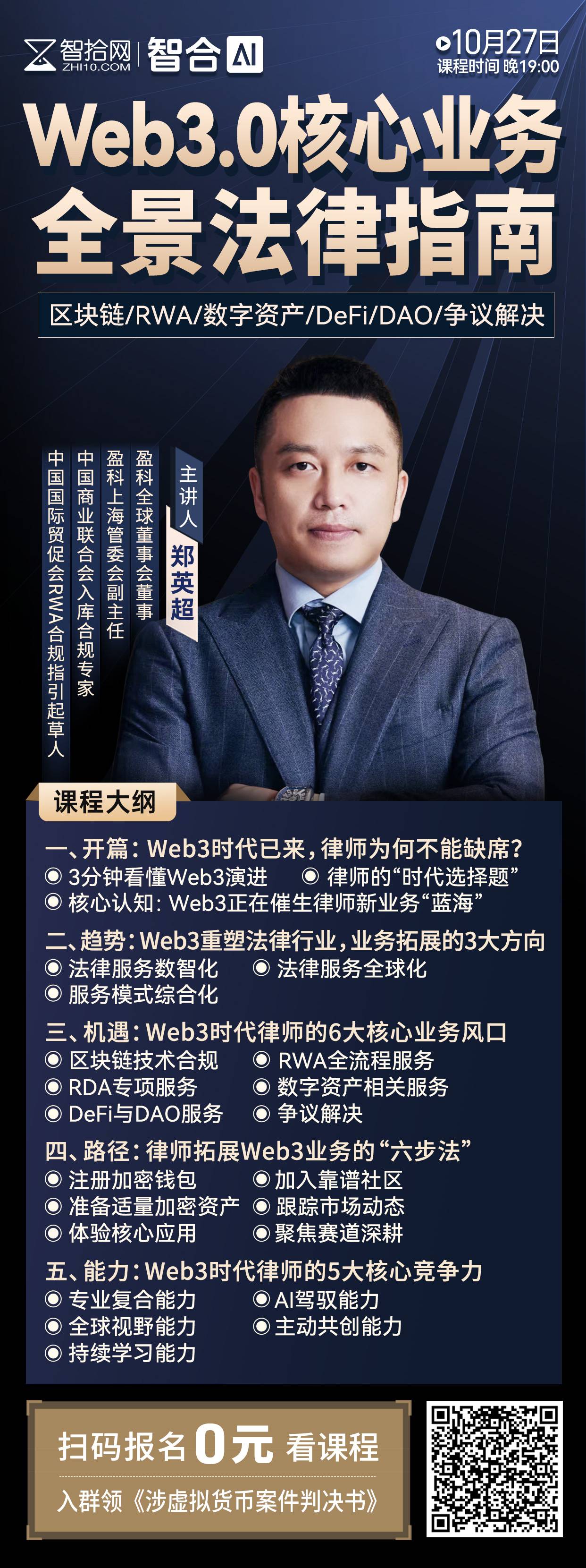【直播回看】郑英超:Web3.0核心业务全景法律指南