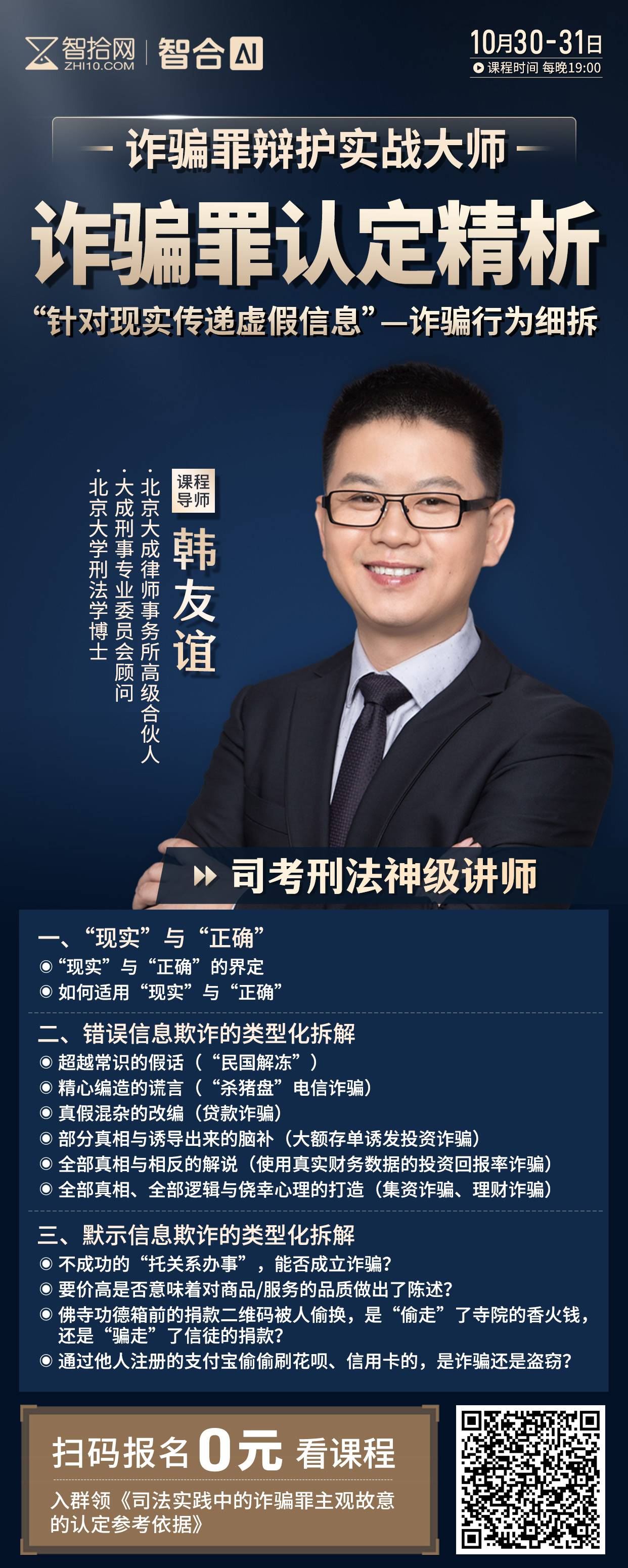 【课程回看】韩友谊:诈骗罪认定精析之“针对现实传递虚假信息”——诈骗行为细拆