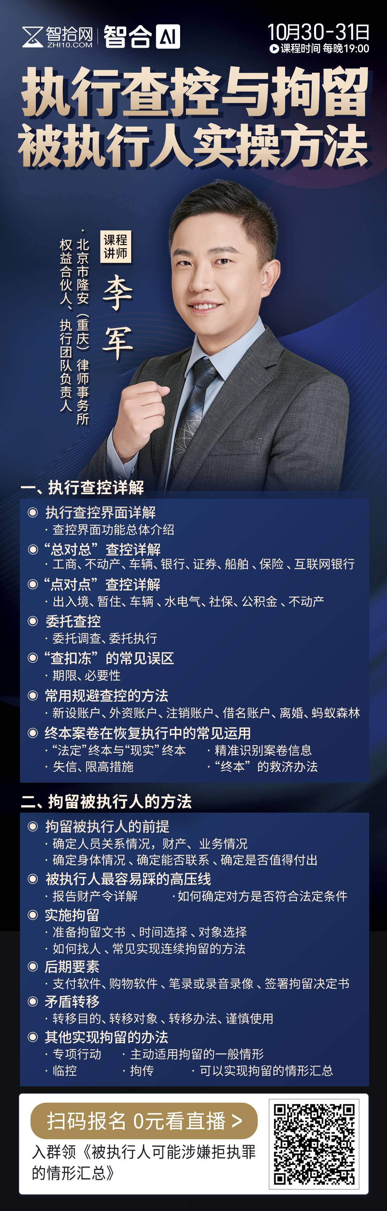 【课程回看】李军:执行查控与拘留被执行人实操方法