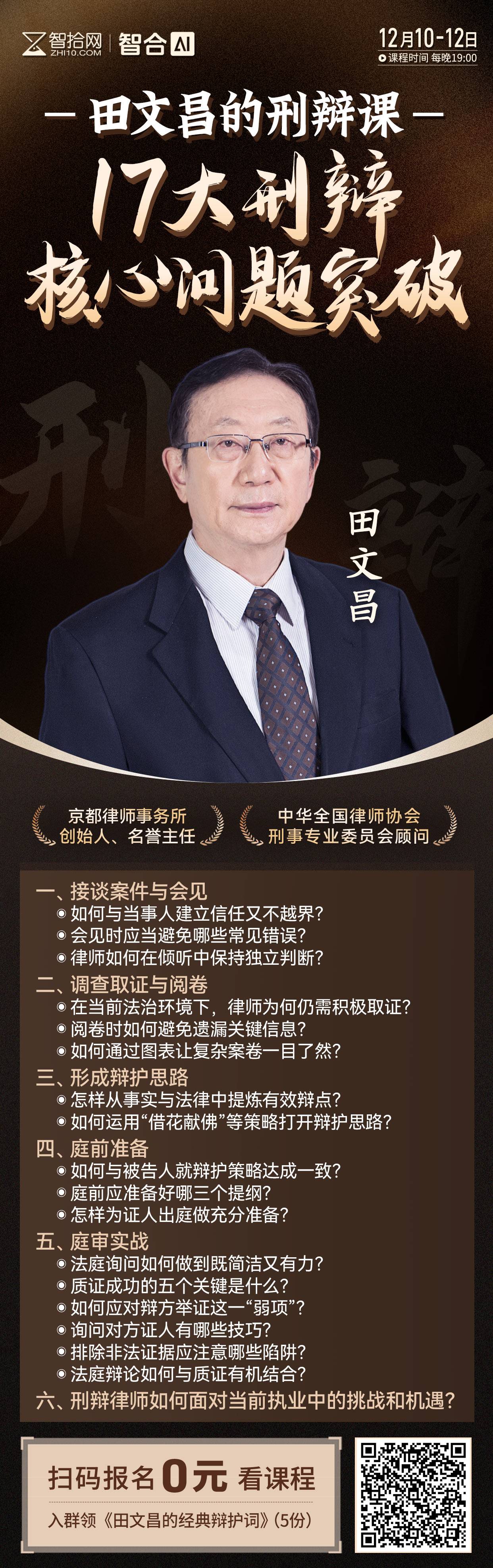 【三天免费课程】田文昌的刑辩课——17大刑辩核心问题突破